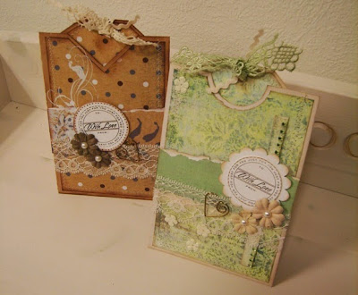 Today I wanted to make cards instead of layouts. Made two tag-cards, and I'm sure there will be more. I think I've forgotten how great it actually was. The brown one is made of papers from 3ndy paper, and the green one is MME, one of the newest collection.
